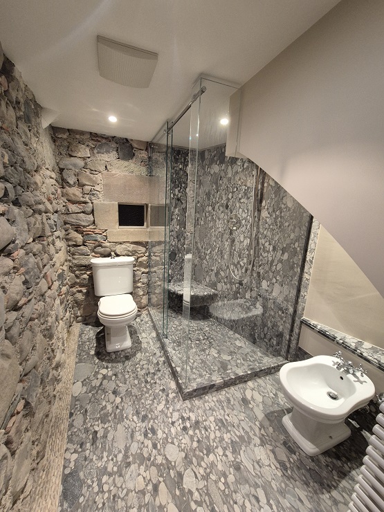 Au rez inférieur, accessible depuis l'intérieur ou par une entrée indépendante depuis le jardin, se trouvent une chambre supplémentaire, un dressing, ainsi qu'une salle de douche en pierre avec douche à l'italienne. Un petit cagibi pouvant servir de buanderie, une cave et un grenier complètent le bien.